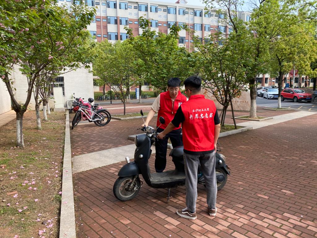 近日,能源与动力工程学院组织学生党员在新能源片区开展志愿活动,引导全体学生将电动车规范停放到指定位置,优化新能源片区整体环境。