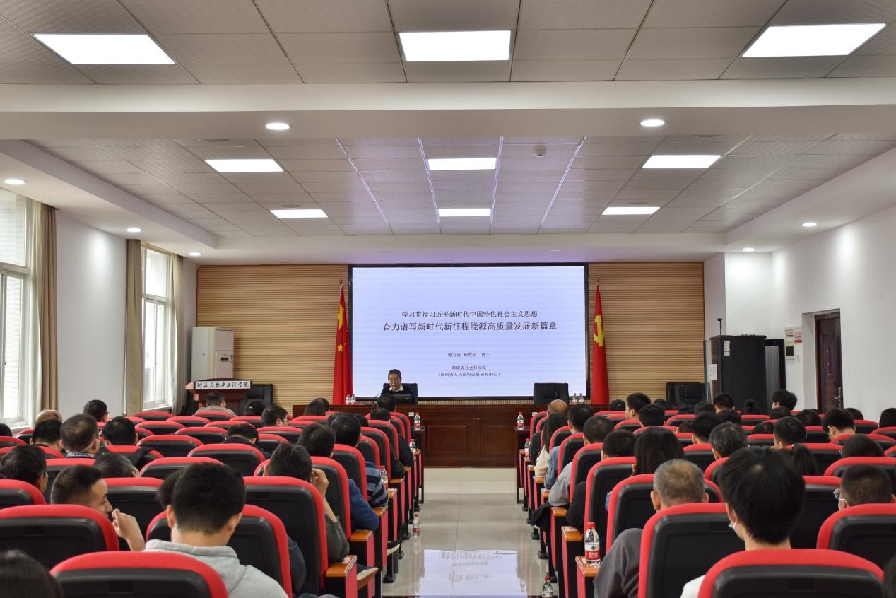 为学习贯彻习近平新时代中国特色社会主义思想,奋力谱写新时代新征程能源高质量发展新篇章,5月23日15:00,能动学院邀请湖南省社会科学院曾万涛研究员在新能源大楼二栋502报告厅讲授党课,学院全体教职工与第二十七期预备党员培训班学员参加本次学习。