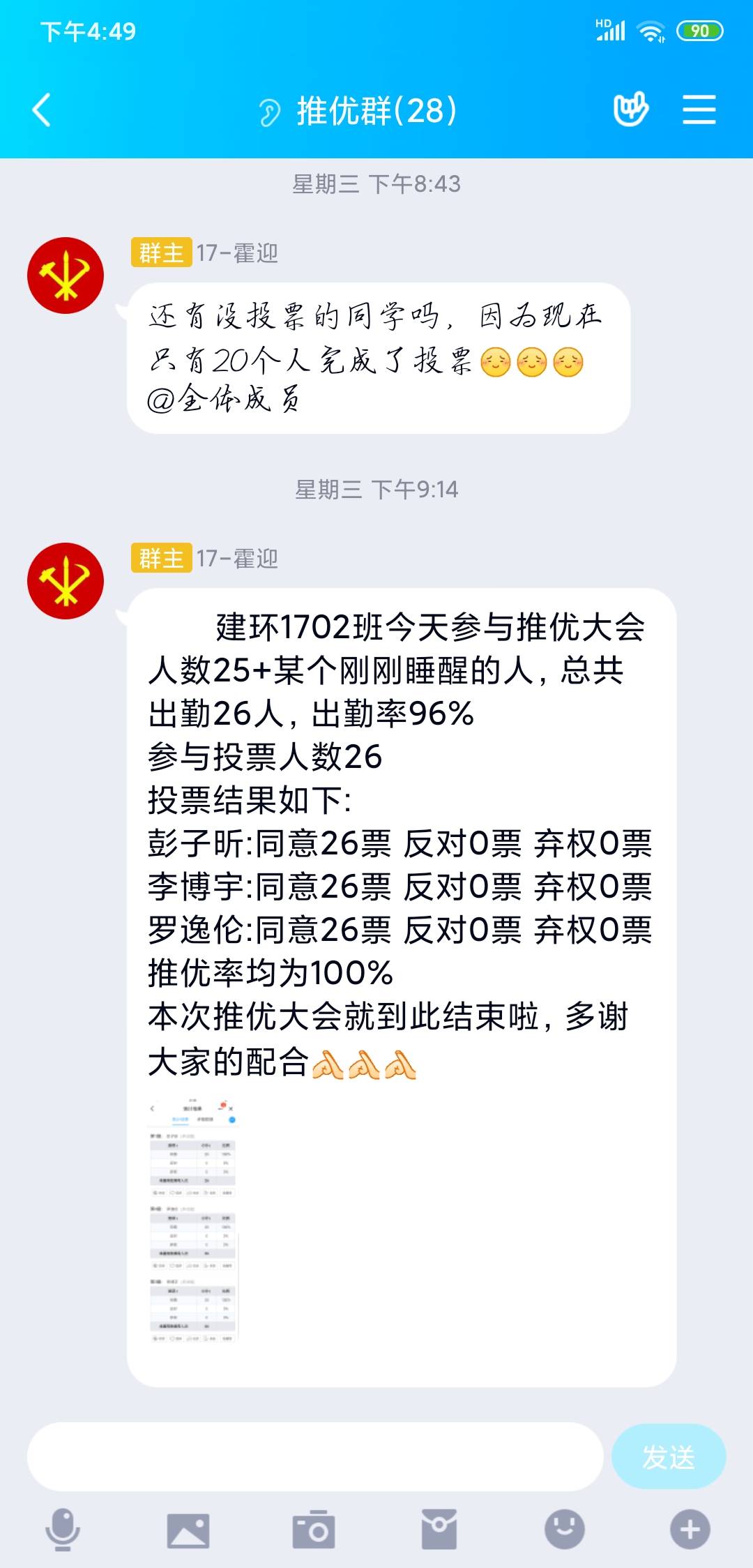 本次产生入党积极分子采取团组织推优和党员推荐的方式。本着公平、公正、公开的原则,共青团员自愿报名参加入党积极分子选拔,各班举行线上团员推优大会,符合条件、有意愿的同学发表竞选演讲,由团支部书记班内组织线上无记名投票,确定推荐名单,各支部正式学生党员可推荐1名团员参加团组织推优,最后由党支部线上讨论确定最终入党积极分子名单。