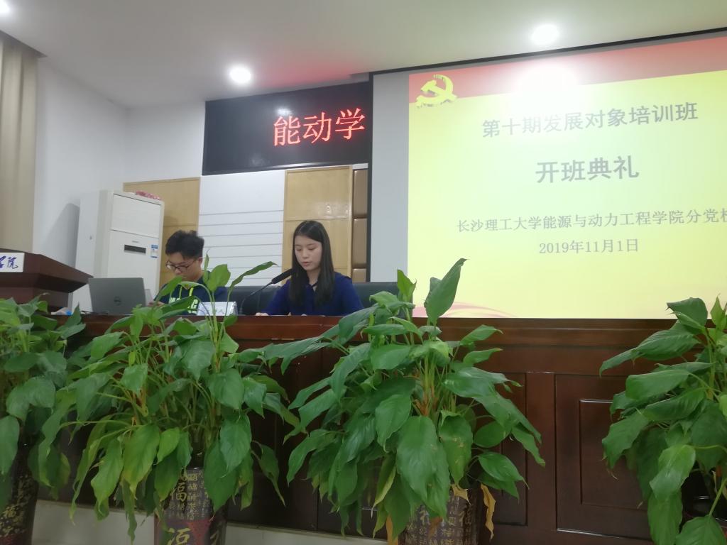 2019年11月1日晚18时10分,能动学院第九期发展对象培训班开班典礼在云塘校区新能源大楼二号楼502举行,由张栋兴主持,党建辅导员代佳欣及第九期全体发展对象参与。