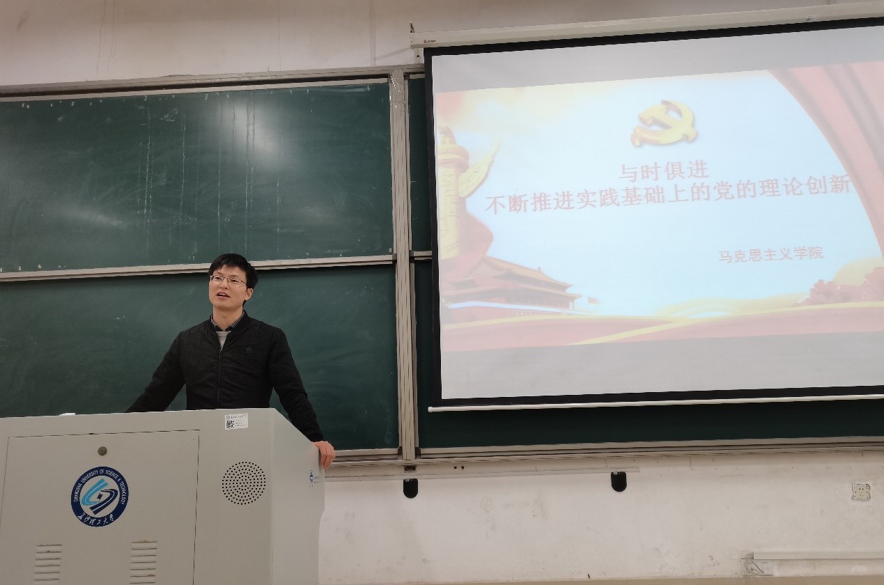 11月8日晚18时30分,由物电学院、能动学院分党校联合举办,王威峰老师主讲的“与时俱进,不断推进实践基础上的党的理论创新”党课在工科一号楼A106开讲。参加本次党课培训的共193名入党积极分子。