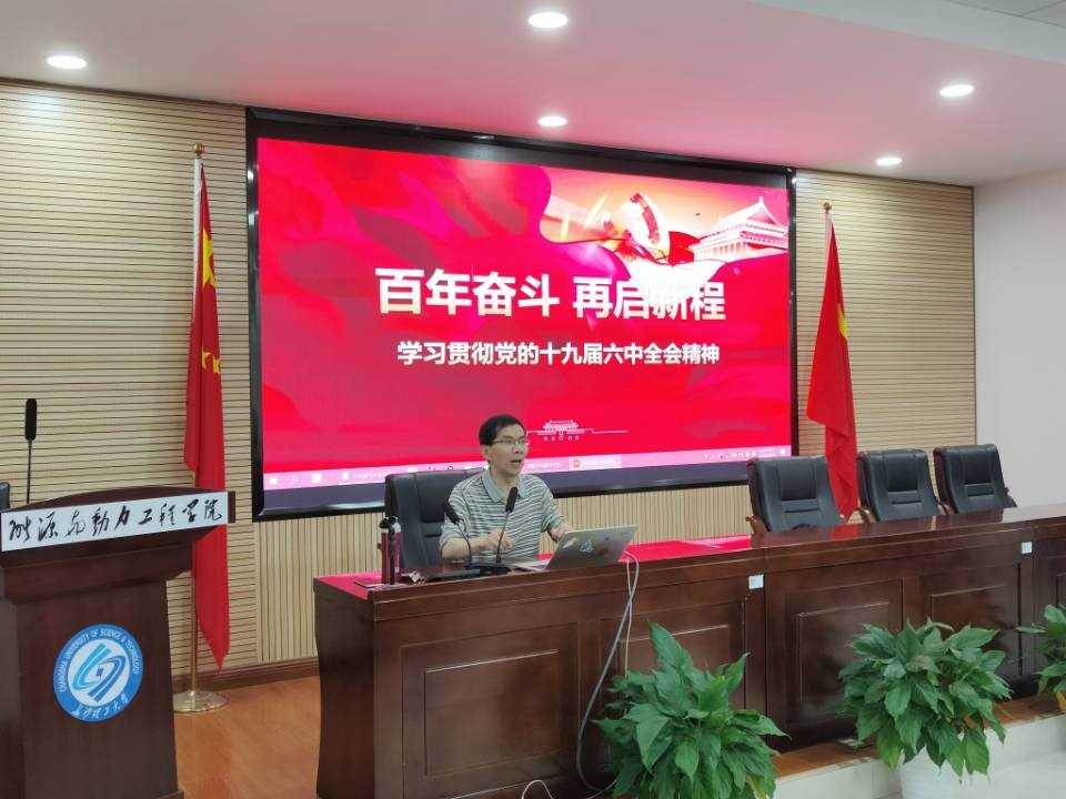 能动学院于4月26日19点在新能源大楼二栋502顺利举行了党的十九届六中全会精神解读活动暨预备党员培训班。本次党课由马克思主义学院副教授邹新树讲授。