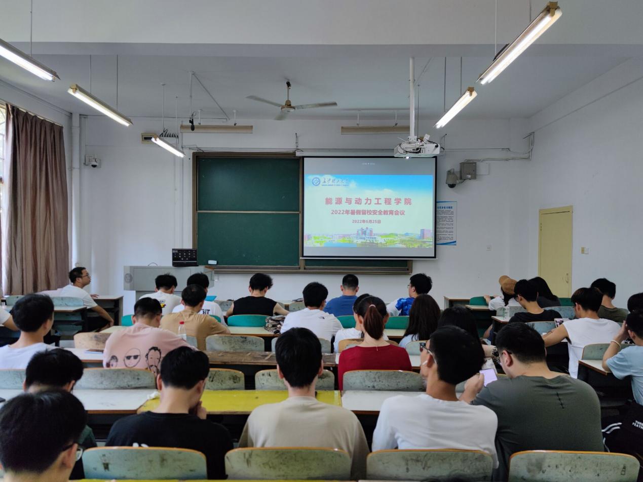 6月25日上午,能源与动力工程学院在金盆岭校区6教104和云塘校区新能源大楼502分别召开了研究生暑期留校及离校安全教育大会。能源与动力工程学院研一和研二全体研究生参加,会议由研究生辅导员胡雅妮主持。