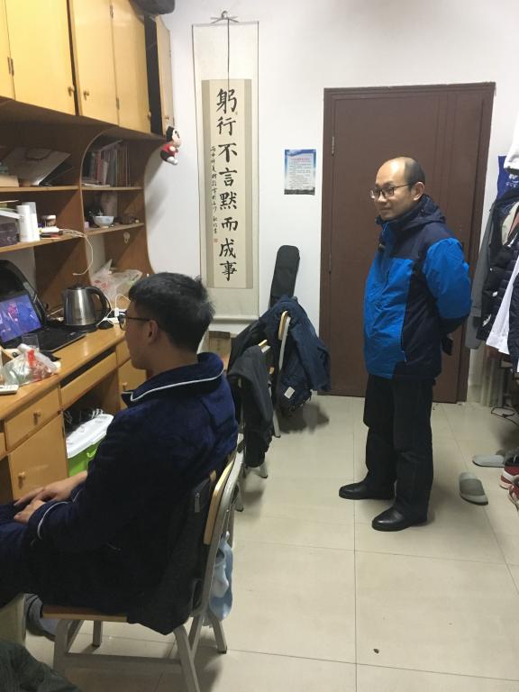 下寝时,刘忠慰问了研究生同学们,提醒同学们要注意防火、防盗,同时在寝室长的配合下排查了宿舍违规电器和管制刀具等安全隐患。研究生辅导员胡琳琳提醒同学们冬天注意防寒保暖,并鼓励同学们保持良好的生活节奏,在做好研究学术的同时注意寝室和实验室的清洁卫生。