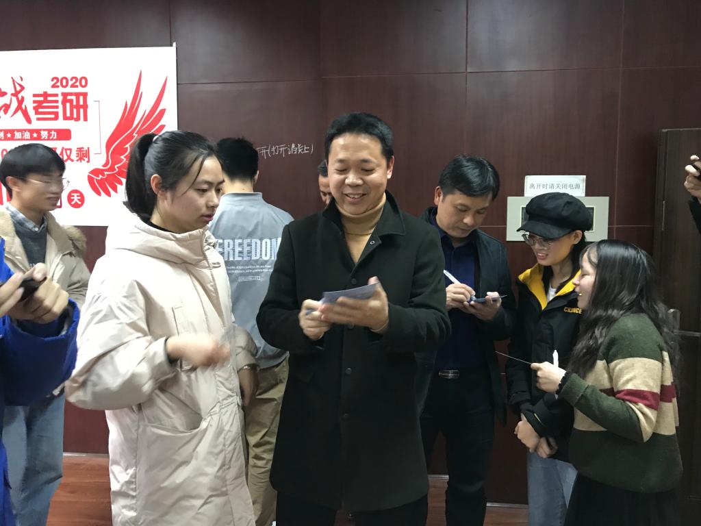 在寝室楼下,在考研教室,在图书馆,处处可见汽机学院师生为考研学子送祝福的场景。“天道酬勤,祝大家梦想成真!”12月19日,2025年新澳门原料网站汽机学院院长杜荣华、党委书记邱国良带领全体院领导、学生辅导员将学院精心筹备的234余份考研专属“五福袋”送到备考学子手中。