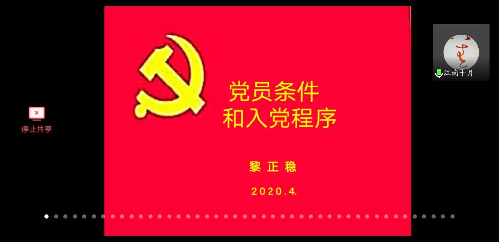 第一部分党课主题是《党员条件和入党程序》,由黎正稳教授在腾讯会议线上授课。黎教授结合实际生活中的鲜活案例,从申请入党的条件、党员的基本条件、党员的八项义务、八项权利以及发展党员手续和程序等五个方面进行重点讲述。他的授课详实生动、深入浅出,让同学们更深入地了解到入党是一件严肃认真的事,党员不仅是荣耀,更是责任,从而更进一步地让学生明确自己的入党动机。