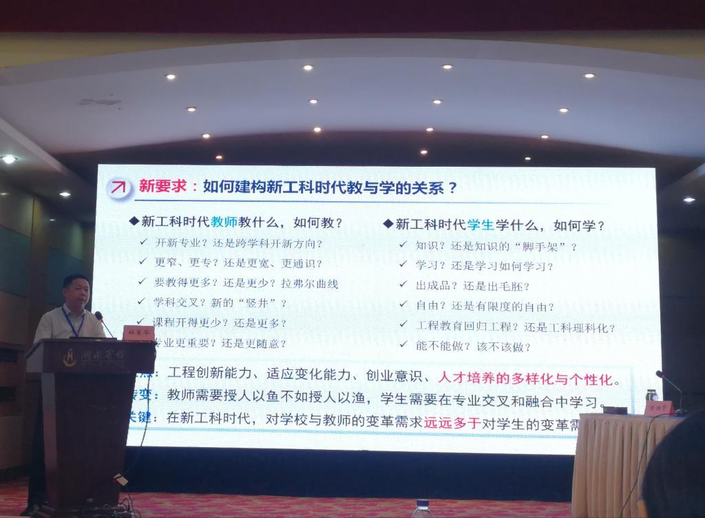 6月30日,由湖南省教育科学研究院主办,湖南省教科院高等教育研究所承办的湖南省高等教育热点论坛在长沙湖南宾馆召开。本次会议以“一流本科教育”为主题,省教育厅副厅长葛建中、省教育科学研究院院长石灯明、教育部教育发展中心战略发展部主任马陆亭、南京大学教务处处长邵进等领导专家出席本次会议。我校汽车与机械工程学院院长杜荣华应邀到会作“地方高校新工科人才培养模式思考与实践”的专题报告。