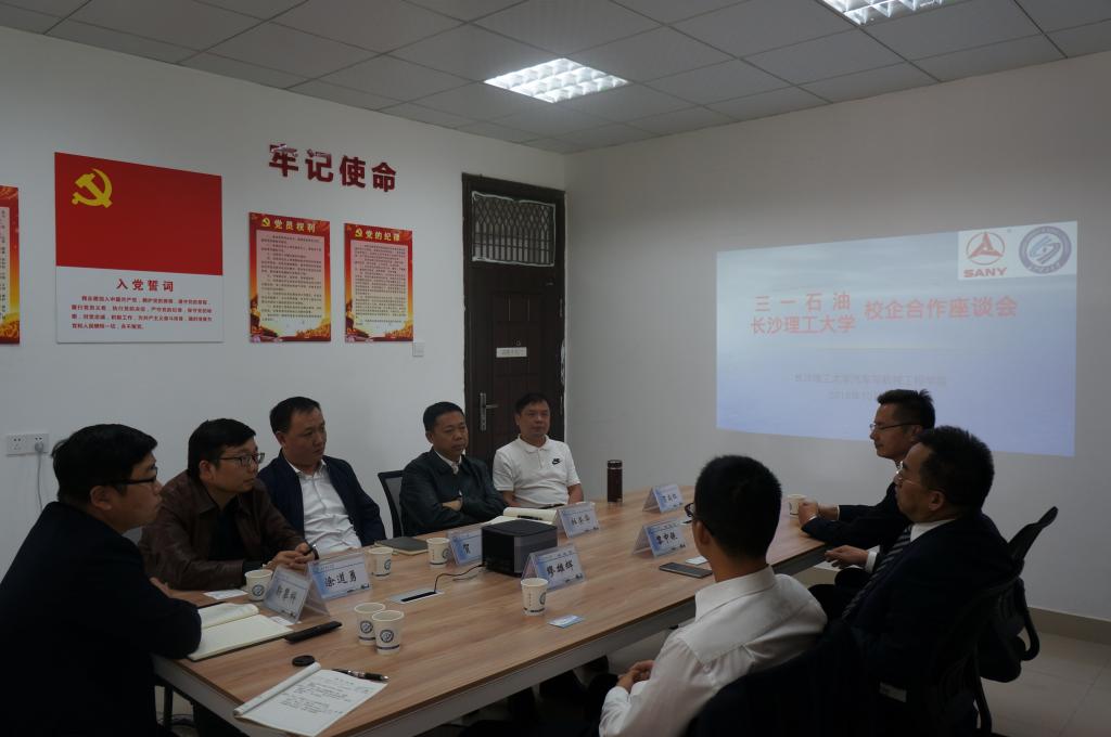 10月26 日,三一集团副总裁、三一石油智能装备有限公司总经理黎中银,三一石油智能装备有限公司常务副总经理缪雄辉等一行来学校汽机学院开展校企合作交流。学校招就处副处长贺良、汽机学院院长杜荣华、经管学院副书记涂道勇、汽机学院副书记靳攀科、贺尚红教授等参加了交流活动。