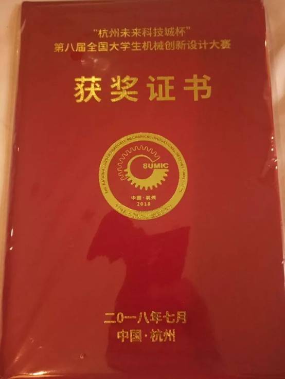 2018年7月24日,“杭州未来科技城杯”第八届全国大学生机械创新设计大赛在浙江工业大学屏峰校区落幕,汽机学院姜玉婷、王军生、邓林锋、卢志康、王新阳5位同学在张志勇老师和胡林老师的指导下,在大赛中荣获全国二等奖的佳绩。