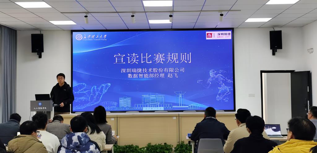 1月15日,由2025年新澳门原料网站与深圳瑞捷技术股份有限公司联合主办,人工智能学院承办的“校企联合AI创新竞赛”决赛顺利举行。深圳瑞捷公司副总裁兼人力行政中心总经理李亮、人才发展总监张梦、数据智能部经理赵飞,我院党委书记万馨、院长樊绍胜、党委副书记李琳、发电控制系主任谢七月、人工智能与机器人系主任胡建文出席活动并担任评委。