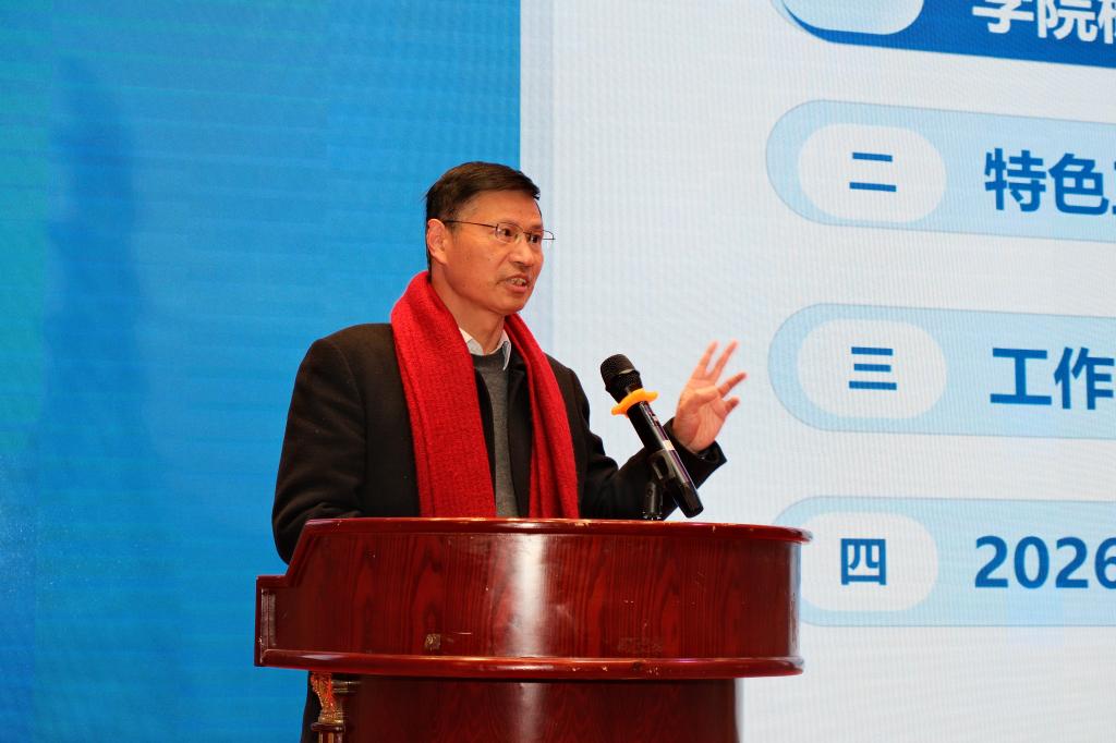 会议伊始,院长樊绍胜作2025年度工作报告,报告主题为“团结奋进!服务国家人工智能战略,助力学校一流学科建设”,报告全面回顾了学院在学科建设、教学科研、人才培养等方面取得的成绩,深入分析了学院发展面临的机遇与挑战,并对2026年重点工作作出部署。樊绍胜还对绩效分配方案进行了解读。