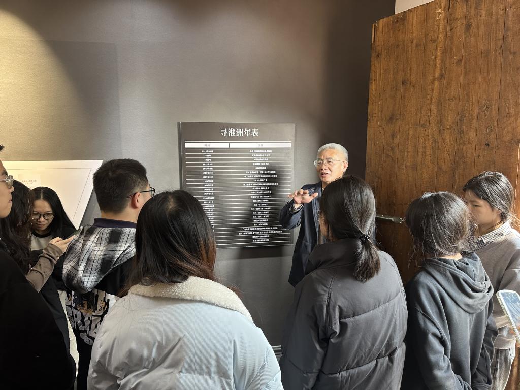 展厅内,寻淮洲参加秋收起义时使用的梭镖复制品、任红七军团军团长时的军装展品,以及他写给家人的书信手稿格外引人瞩目,其中“为工农翻身而死,死得其所”的字句,让同学们深受震撼。他在战斗中左臂负伤仍坚持冲锋,腹部中弹后仍强忍剧痛指挥部队的壮举,彰显了革命军人的钢铁意志。他深入群众开展游击战争、参与插标分田斗争的经历,展现了共产党人扎根人民、服务人民的赤子情怀。他身上所体现的“不畏强敌、勇毅担当”的斗争精神,与水利人“攻坚克难、守护安澜”的职业精神高度契合,让同学们对专业使命有了更深刻的体悟。