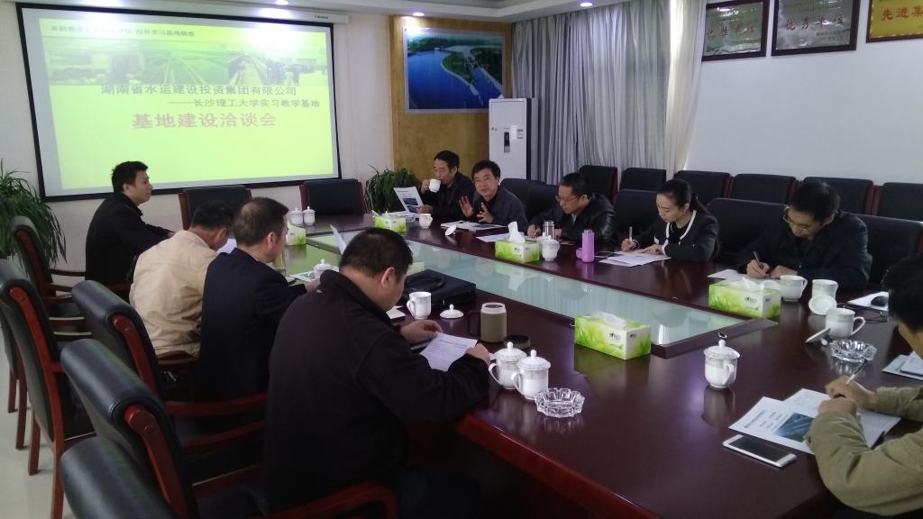 随后在项目部会议室,校企双方召开了2025年新澳门原料网站实习教学基地建设洽谈会。胡永乐首先介绍了学校的基本情况,以及此行的目的。陈杰代表学院做了实习教学基地建设及实习教学工作汇报,介绍了校企双方在在本科教学实习、人才培养、科研合作、本科教材编写、本科实验教学、本科毕业设计、本科生创新能力培养方面取得的丰富成果。湖南省水运建设投资集团有限公司徐国兵副总经理简要回顾了从1993年开始的基地建设历史,以及双方在产学研方面的合作情况。最后喻玲娜、贺跃光、蒋中明与基地共同商议了本科教学工作审核评估株洲航电枢纽校外实习基地检查、实习基地建设等相关事宜。