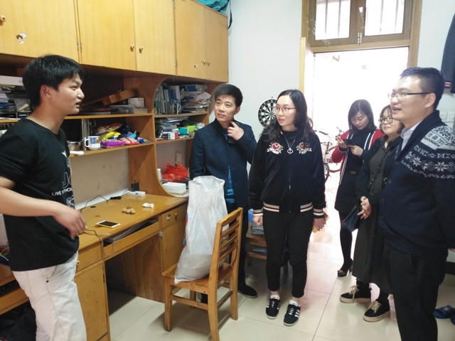 3月4日上午水利工程学院党委副书记王学成与全体学工办老师共同前往学生宿舍看望返校学生。