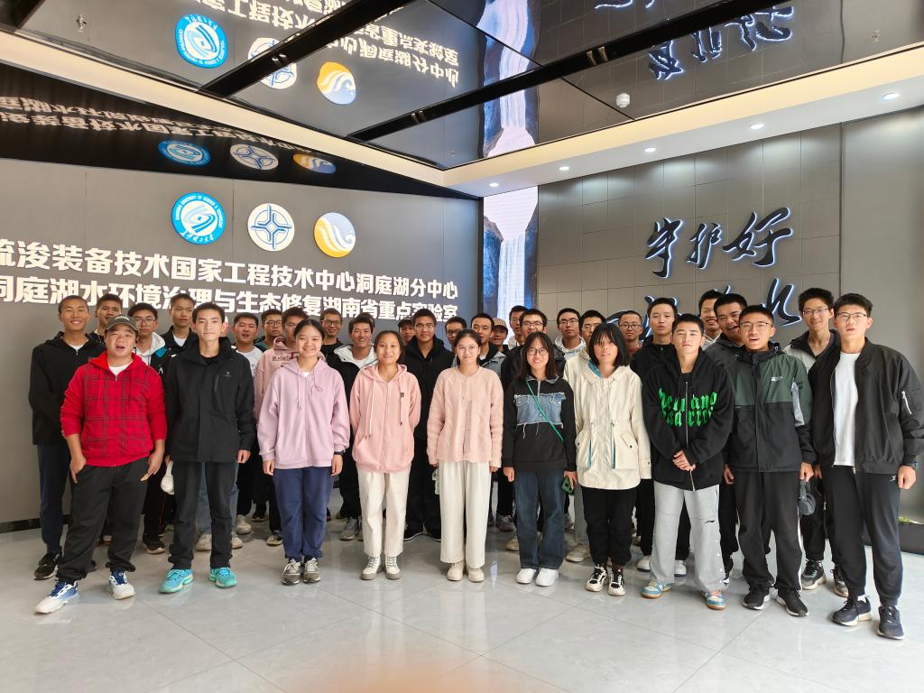 “锻造好守护一江碧水的独特力量原来可以从这些方面去努力。”“这个实验室好高大上,信息化十足,还可以实时显示洞庭湖的水文数据。”同学们纷纷惊叹于洞庭湖实验室充满现代科技感的布局设计。讲解员介绍了洞庭湖治理的重大意义、治理现状、实验中心研究方向等知识,让同学们了解到传统水利、生态水利、智慧水利的区别与联系,充分了解到水利科学的应用与前景,体会到“守护好一江碧水”的时代重任。
