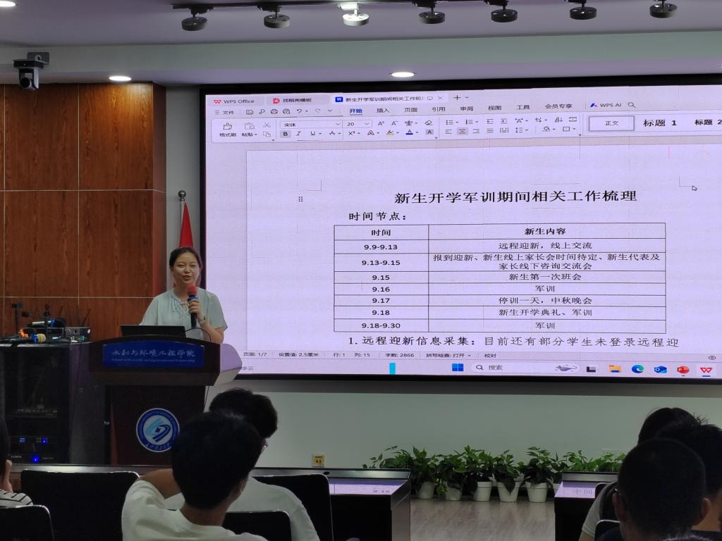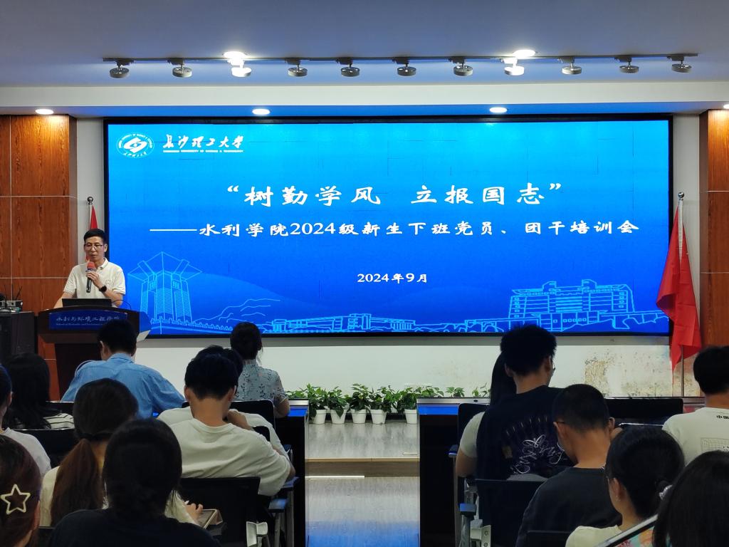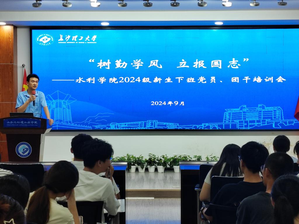 9月10日,水利学院在工三B319召开了“树勤学风,立报国志”2024级新生下班党员、团干培训会。心理辅导员刘灿、党建辅导员陈鑫林、2024级辅导员王正博和全体本科新生下班党员、团干参加,会议由2024级辅导员李永睿主持。