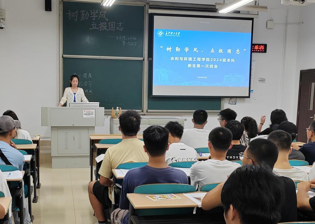 为增强班级凝聚力,帮助新生更好地适应大学生活,水利学院于9月15日19:00在工科三号教学楼召开“树勤学风,立报国志”2024级本科新生第一次班会,新生班主任和2024级全体本科生到场参会。