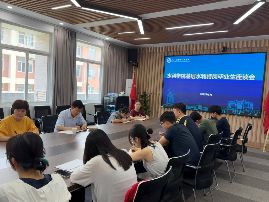 5月26日,水利学院在新能源1栋420会议室组织召开2021级基层水利特岗毕业生座谈会,校关工委常务副主任王乃厚、院党委副书记银波、2021级10名学生代表参与座谈会,会议由院关工委秘书王祎主持。