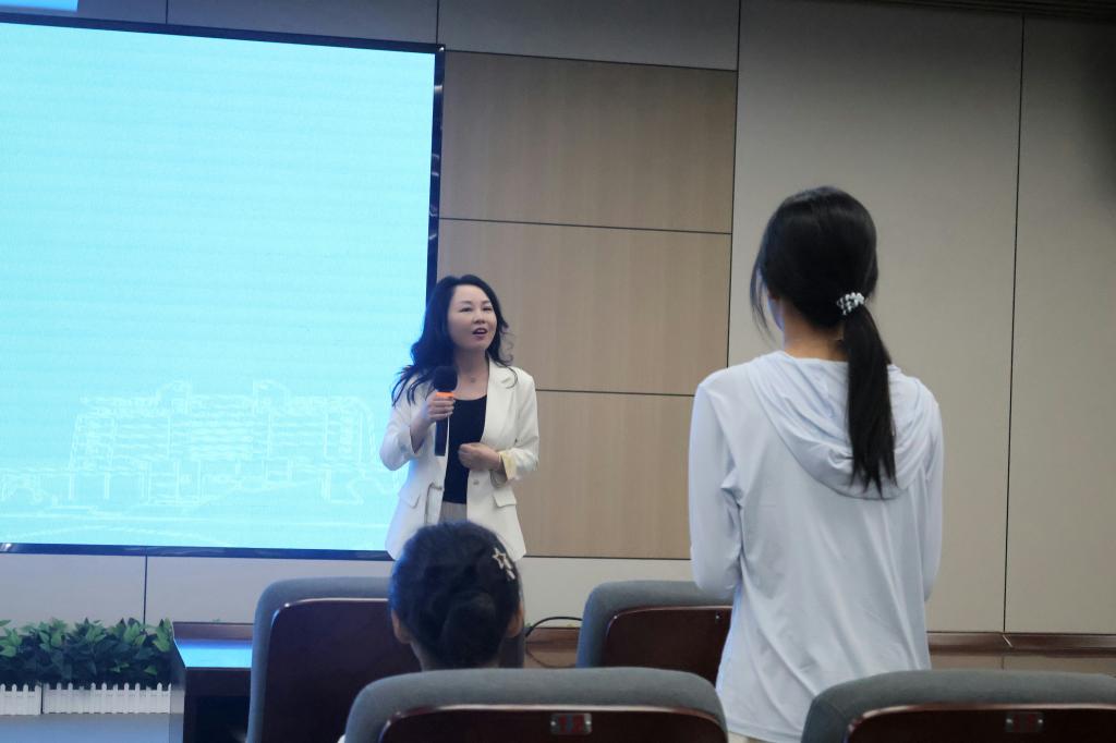 在互动环节,马靖雅、潘辰等四位同学结合自身经历,与肖满红女士就人生规划、职场挑战等话题进行了深入互动交流。