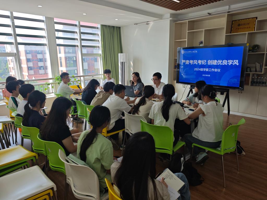6月6日,水利学院在新能源一栋407教室召开本学期学委工作会议,聚焦“严肃考风考纪 创建优良学风”主题,会议由2024级辅导员王正博主持,辅导员李永睿和2024级各班学习委员参会。