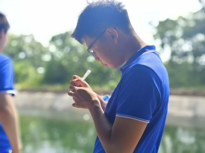 采样当天,团队成员在35℃高温下徒步巡查千米渠系,克服环境挑战,严格按规范采集水样。在农田区结合作物种植与施肥情况记录数据,在排水口与沟渠处动态取样,在总沟与池塘实施分层采样,确保数据全面、科学。团队负责人张怡帆同学表示:“基层水利工作的艰辛让我们深刻体会到‘把论文写在祖国大地上’的意义。”聂小保教授指出:“此次实践既是专业训练,更是一堂生动的生态文明课,引导学生感悟‘水是生命之源’的深刻内涵。”