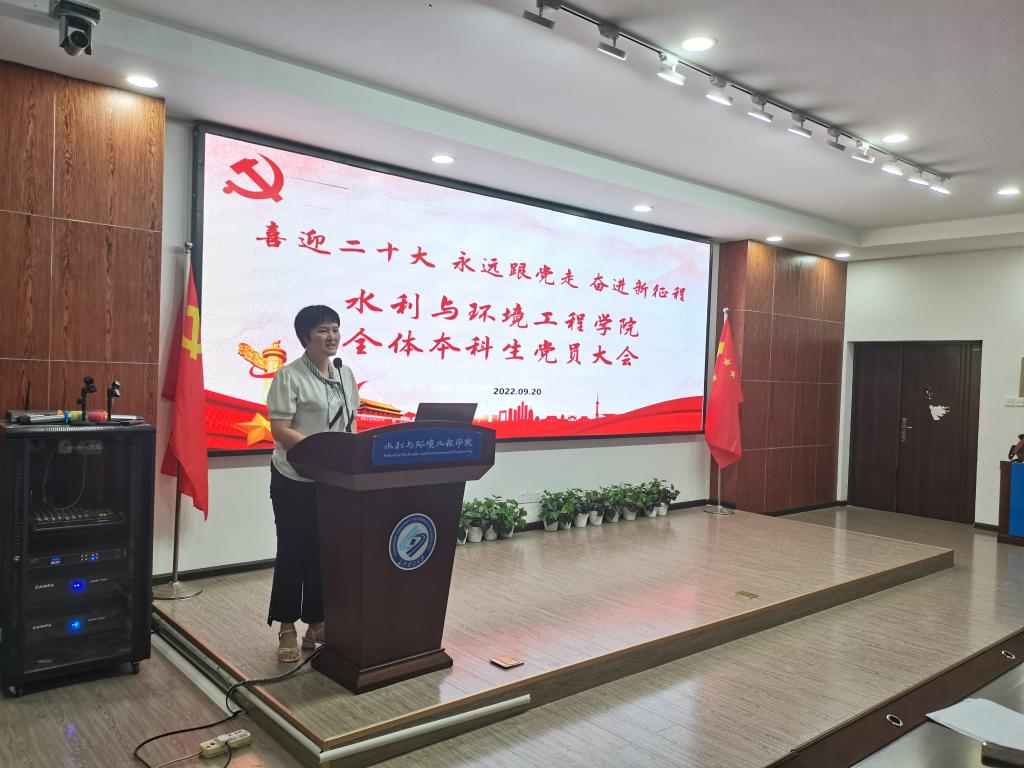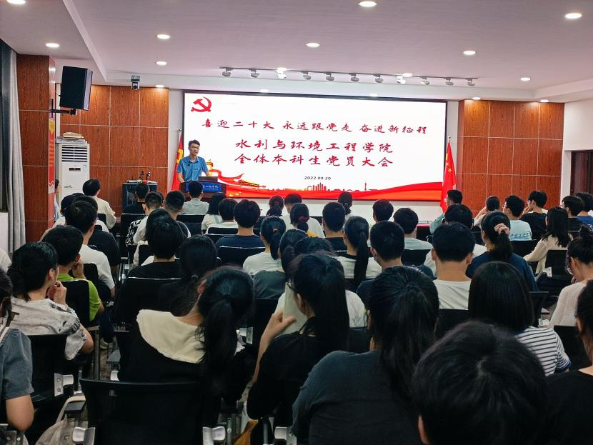 9月20日,水利与环境工程学院召开主题为“喜迎二十大,永远跟党走,奋进新征程”的全体本科生党员大会。院党委副书记银波、2019级辅导员甯子豪、党建辅导员陈鑫林出席会议,学院全体本科生党员参加会议。会议由谭茜同志主持。