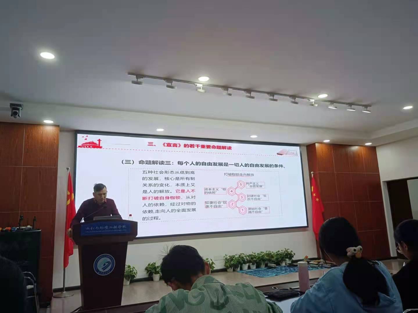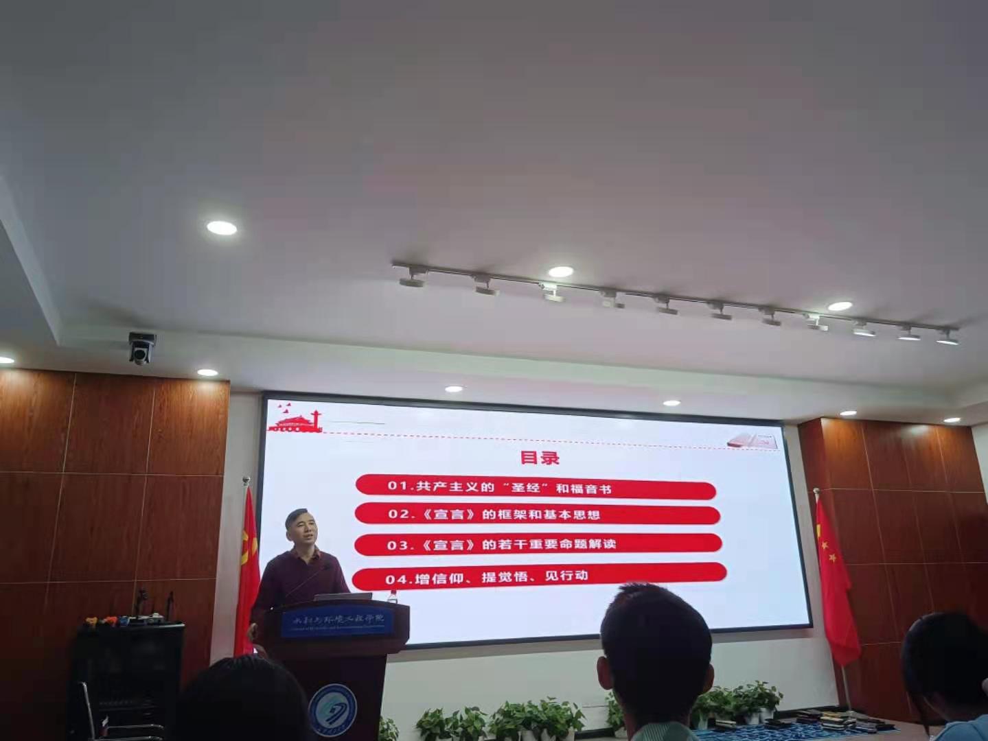 117日晚,水利与环境工程学院分党校在工科三号楼B319开展了入党积极分子培训班把握真理力量,补足精神之钙——《共产党宣言》解读专题党课,本次党课由马克思主义学院黄前程老师主讲。