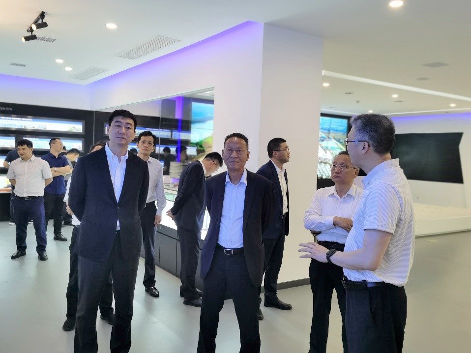 蒋昌波向康学增一行介绍了洞庭湖概况、目前治理所面临的重难点,以及洞庭湖实验室的建设历程、组织架构、发展目标与研究方向等方面,重点介绍了智慧洞庭综合信息化平台,并对“一一四”防汛减灾智慧使能平台及全天候采砂监管等模块的实际应用情况进行了详细展示。此外,还对实验室正在研发的覆盖水利、水运、道路及农业等领域的湖南省水灾水害预警信息化服务平台和智慧城市可视化平台进行了介绍。
