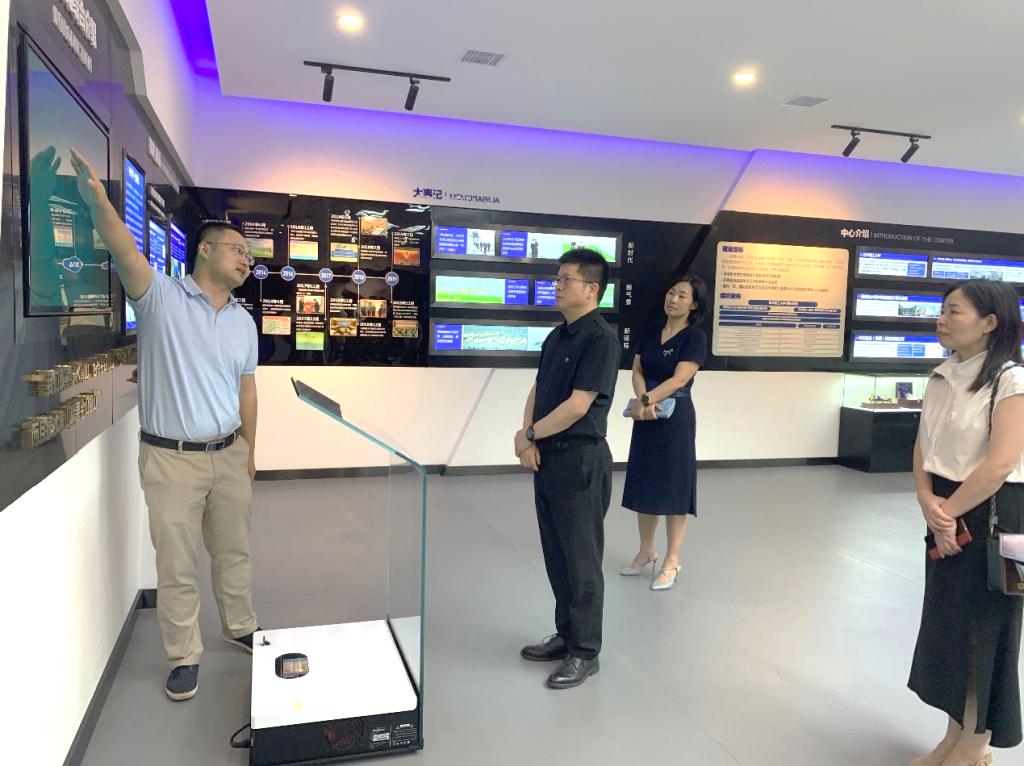 陈杰向殷晓元一行介绍了洞庭湖基本概况、目前所面临的机遇与挑战、实验室发展目标,以及洞庭湖实验室的建设历程、主要研究方向、科普宣教等方面,重点介绍了智慧洞庭综合信息化平台,并对实验室正在研发的覆盖水利、水运、道路及农业等领域的湖南省水灾水害预警信息化服务平台进行了展示。
