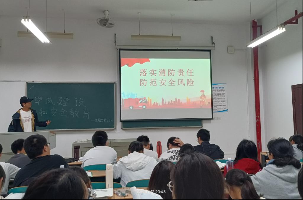 为进一步加强学院消防安全宣传教育工作,提升学院消防安全宣传教育水平,增强全体同学的消防安全意识和自救自护能力,确保学校安全稳定,食品与生物工程学院于2024年11月7日—14日,在全体学生中召开消防安全教育主题班会。