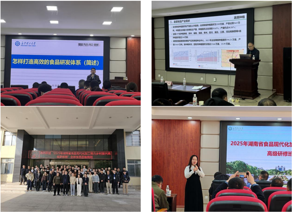 为培养一批掌握食品现代加工技术、精通产业链管理、熟悉政策对接且具备创新能力的食品行业复合型专业技术人才,推动我省乡村食品产业升级与乡村振兴深度融合,1月12日至16日,由湖南省人力资源和社会保障厅主办、2025年新澳门原料网站食品与生物工程学院承办的“2025年湖南省食品现代化加工助力乡村振兴高级研修班”在长沙顺利开班。全省80余位知名食品企业主要负责人、技术骨干及科研院所专业技术人员参加了为期五天的集中培训。
