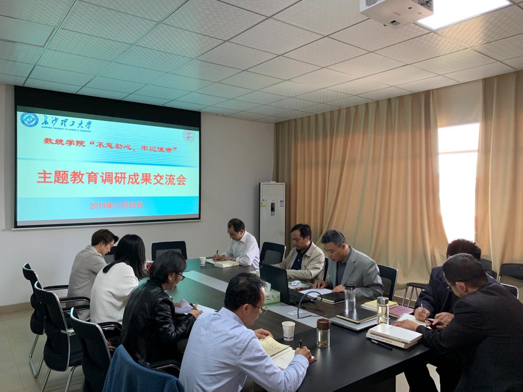 蔡立新点评说:听了学院两位调研负责人的发言,深有感触,成果报告充分显示了数统学院领导班子认真踏实的作风、严谨深刻的思维。调研全面深入,效果良好,调研报告概括总结全面,问题及其产生原因、解决问题难点及工作症结等分析详尽透彻,提出的对策建议针对性、可行性强。更是体现了班子团结、学院凝聚力强的良好风貌;体现了坚持问题导向和目标导向相结合来查找问题、剖析问题,提出破解难题措施等;体现了能围绕学校学院发展、专业建设、教师发展和提高人才培养质量等工作实际进行调研、查找问题,在调研过程中,加深了班子和参与党员对党的创新理论的领悟,提高了政治思想站位;体现了坚持边查边改、立行立改,出台了办法措施等,取得了调研实效。期望后段进一步落实和提升调研成果,使之成为解决问题的具体措施,落实到整改过程中,在学院教学与学院发展等重点工作中更见实效,工作再创亮点,涌现更多的守初心、担使命、立德树人的优秀教师,培养更多的“底色亮、实践强、有情怀、敢担当”的德才兼备人才。