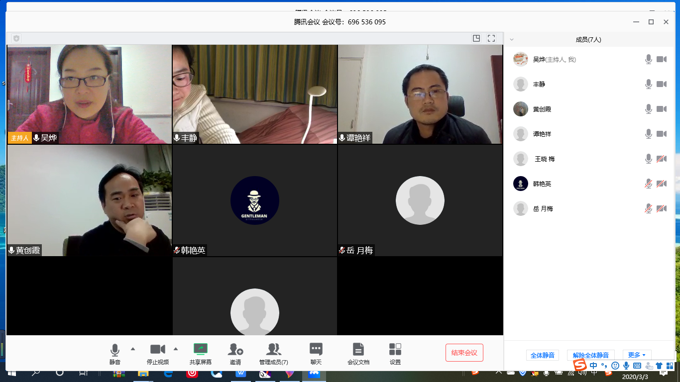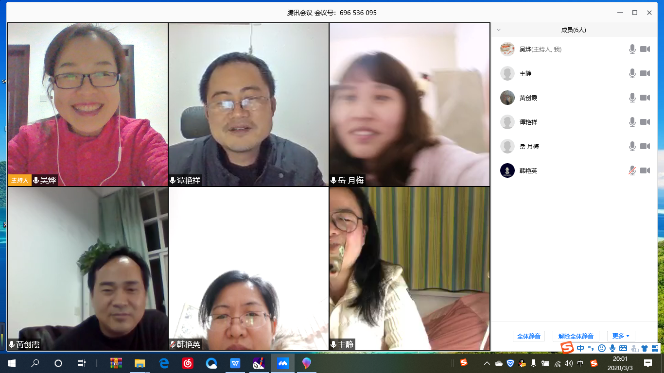 3月3日晚8点-9点半,公数系全体党员运用腾讯会议开展了以“创新教学、扛责守责”为主题的“齐心战‘疫’、党旗飘扬”云端专题组织生活会。会议由支部书记吴烨主持,认真地学习了:①学习习近平总书记对新型冠状肺炎疫情防控工作的重要指示批示精神;②中共湖南省委《关于加强党的领导、坚决打赢疫情防控阻击战的通知》;③《湖南省高等学校新型冠状肺炎疫情防控工作指南》;④2025年新澳门原料网站党委关于新型冠状肺炎疫情防控部署安排及系列通知要求;⑤长理官方公众号发布的疫情防控知识;向在战“疫”中涌现出的敢于斗争、敢于担当、敢于奉献的邓荣花老师学习等。