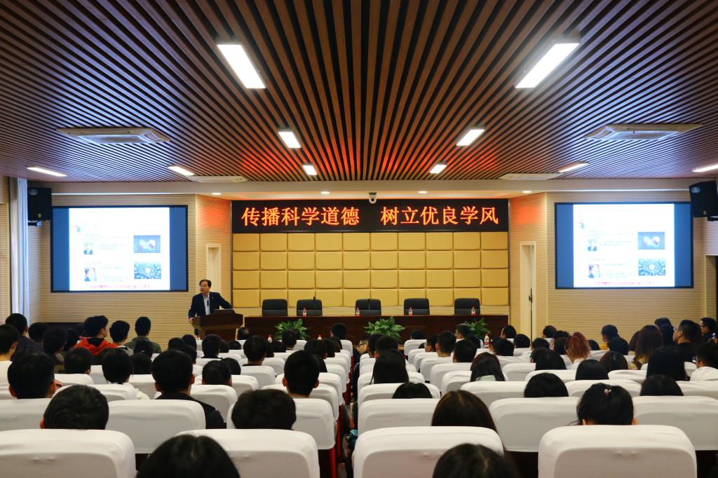徐宗本院士围绕“人工智能的基石在数学”这一话题,作了题为“AI与数学:融通共进的时代”的科普报告,其核心观点是科学研究的模型驱动方法论与数据驱动方法论非对立,是互补的,是相辅相成的。报告会上,他剖析了人工智能与数学的紧密联系及交互作用,提出了能够将机器学习、知识工程与数学方法相统一的控制论框架,阐述了当前人工智能研究凾待解决的五个基本数学问题,最后还介绍了人工智能对数学的应用。本次科普报告为广大师生普及了科学知识、弘扬了科学精神、传播了科学思想。精彩的报告赢得了与会师生的阵阵掌声。