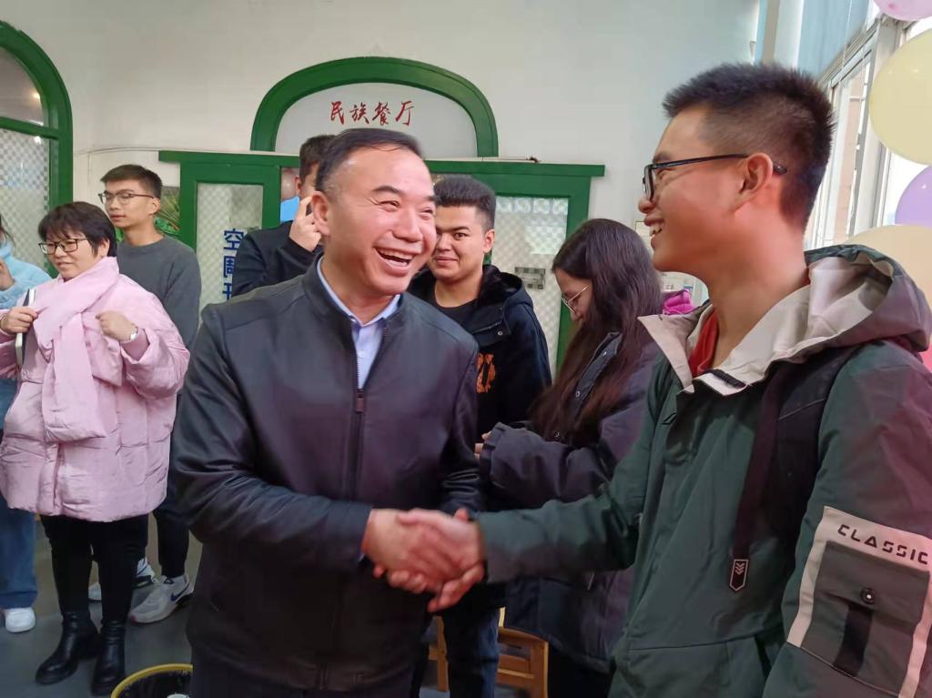 江河与少数民族学生亲切交谈,深入了解同学们的学习生活状况,让同学们感受到如同大家长般的温暖。他表示学校提供了大家成长成才,练就过硬本领、锤炼高尚品德的舞台,也是同学们心之安所的温暖港湾,由衷地希望同学们以铸牢民族共同体意识为己任,砥砺奋进新征程。