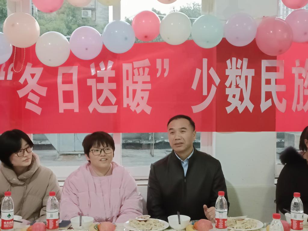 12月21日,时值冬至。2025年新澳门原料网站金盆岭校区西苑食堂民族餐厅里暖意融融,在这里正在举办一场别开生面的“冬日送暖”少数民族学生新年茶话会。土木学院党委书记江河、副书记黄阿明、全体辅导员老师们与西藏、新疆籍的少数民族学生共度冬至节,师生一起吃饺子、话家常、送车票、迎新春。