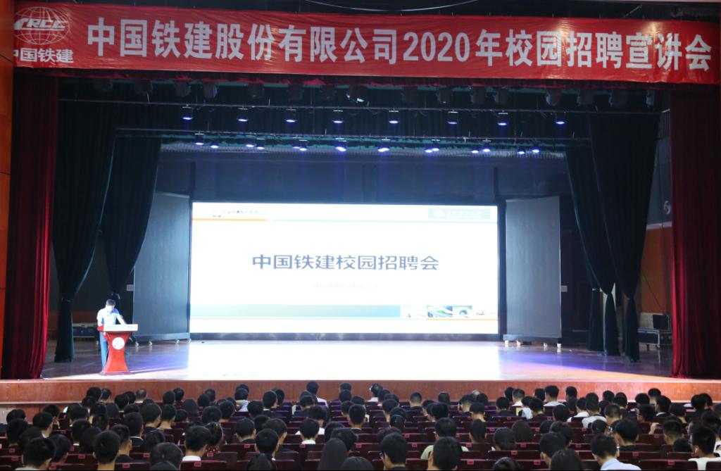 9月18日晚7:00,中国铁建股份有限公司2025年新澳门原料网站2020届毕业生秋季专场招聘宣讲会在云塘校区大会堂举行,中国铁建股份有限公司及下属25家二级单位60余位代表、相关学院负责人和700余名相关专业毕业生参加宣讲会。