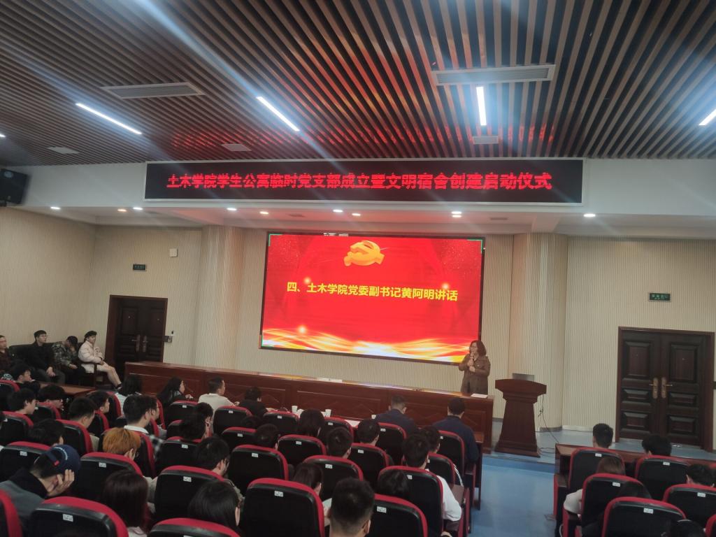 为进一步推进学生养成教育,强化劳动育人、实践育人实效。4月6日下午,土木学院顺利召开了学生公寓临时党支部成立暨文明宿舍创建启动仪式,院党委副书记(代理)黄阿明、学工办全体辅导员、全体本科生党员以及班委参加会议。