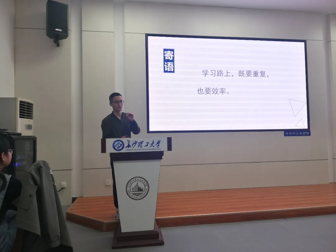 会上,黄明首先介绍了近两年桥卓专业考研学生录取整体情况。他讲到,桥卓支部党员已连续两年录取率超90%,桥卓专业今年考研录取率也突破50%大关,希望学弟学妹们继续弘扬桥卓奋斗精神,再创新高。随后,被同济大学录取的毛汇向大家介绍考研复习经验,他讲到考研目标至关重要,复习要张弛有度,应对压力要合理宣泄。被重庆大学录取的周操讲到,认真的态度、工整的笔记,良好的心态是自己为实现目标而付出的行动。被西南交通大学录取的蒋成川讲到,每日保持一定时间的练题是保持数学题感的最有效途径。被华南理工大学录取的朱璐讲到,稳扎稳打、勿赶进度、不好高骛远是最有效的复习方法。最后,陆锋、吴哲正等10余位学长学姐跟与会同学交流了学习、考研经验,会场氛围活跃。