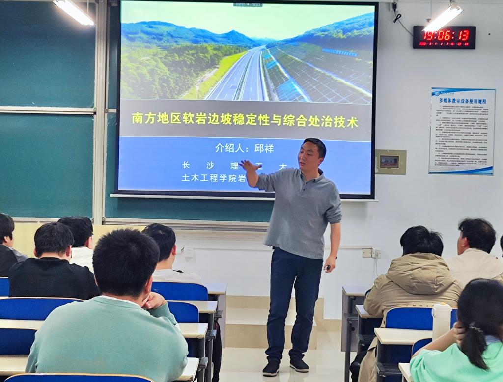 为进一步落实学院专业认证人才培养计划,提高学生对岩土工程系专业的认知。3月7日晚上,土木学院在工科一号楼A210室开展《南方地区软岩边坡稳定性与综合处治技术》通识讲座。我院邱祥副教授应邀主讲,90余名学子参加,讲座由谭涛主持。