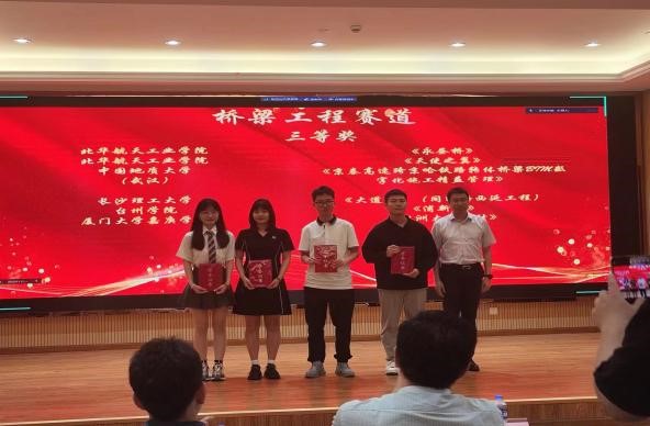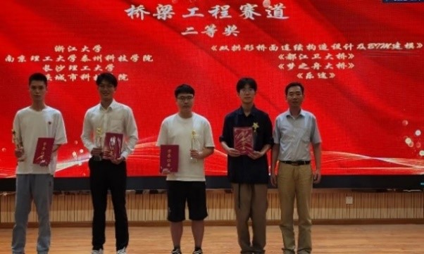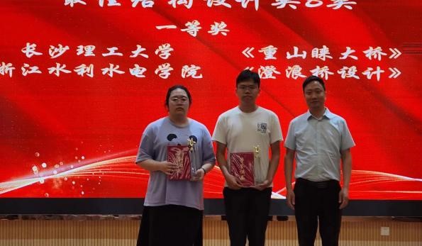 在学院裴必达老师的悉心指导下,决赛当天,我校学生与浙江大学、兰州交通大学、中国地质大学(武汉)等一流高校学生同台对决,经过项目汇报和专家组提问等一系列环节评审,最终我校的古筝行动组和我们都队分别在第五届大学生桥梁设计大赛中获得最佳结构设计奖B类一等奖和二等奖,并且两只支队伍在第三届交通杯大学生BIM大赛中也荣获了桥梁工程赛道二等奖和三等奖,同时我校被评得最佳组织奖。