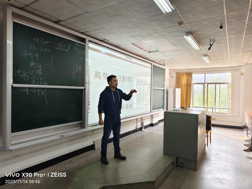 11月14日上午,由土木工程学院举办的大学生通识教育讲座在金盆岭12教学楼418教室举行。讲座由力学系董国朝老师主讲,题目为“高效学习的学习力方法”,约120多名本科生参加了讲座。