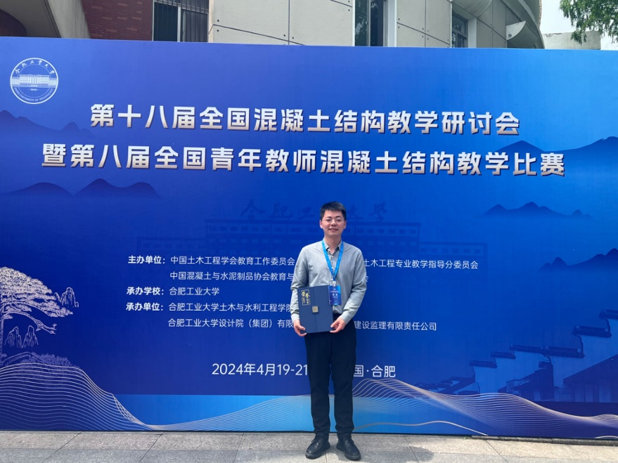 2024年4月20-21日,由中国土木工程学会教育工作委员会、教育部高等学校土木工程专业教学指导分委员会、中国混凝土与水泥制品协会教育与人力资源工作委员会主办,合肥工业大学土木与水利工程学院、合肥工业大学设计院(集团)有限公司、合肥工大建设监理有限责任公司承办的第十八届全国混凝土结构教学研讨会暨第八届全国青年教师混凝土结构教学比赛在合肥召开。我院教师代表粟淼副教授、罗颖老师参加了此次会议,粟淼老师在第八届全国青年教师混凝土结构教学比赛中荣获三等奖。