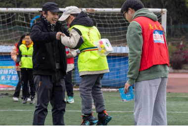 与此同时,还有不少“星星家庭”在志愿者的协助下一同完成5项趣味闯关:“兔子回家”“公鸡下蛋”“两人三足”“乒乓球运输队”“投壶大作战”。体育与游戏的融合,不仅让孩子们感受到运动的魅力,也促进了其与家长、同伴之间的交流与协作。