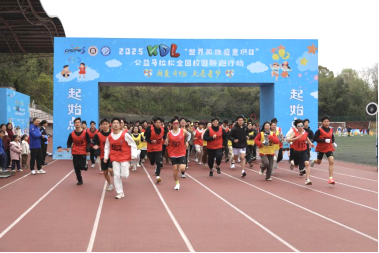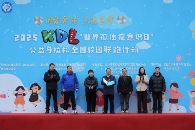 3月30日,2025KDL“世界孤独症意识日”公益马拉松全国校园联跑行动(长沙站)在我校云塘校区田径场举行。本次活动由华东师范大学和全国学校体育联盟主办,我校体育运动委员会、团委承办。活动吸引了22组孤独症家庭参与,集结724名大学生,将趣味闯关与校园马拉松结合,让更多大学生了解孤独症群体。校党委委员、副校长胡永乐出席活动并致辞。学校体育学院相关负责人,长沙市天心区昊天启智潜能发展中心、长沙市星星家庭互助中心相关负责人参加活动。