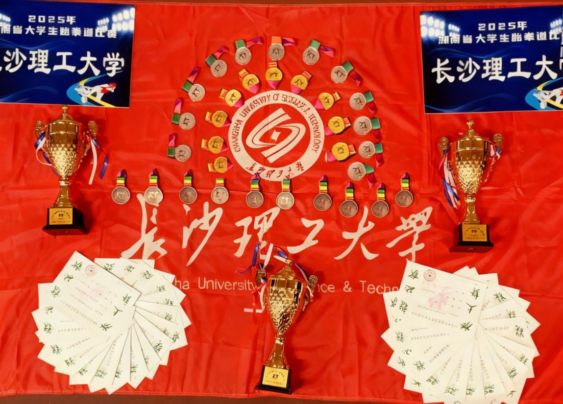 2025年11月25日至30日,2025年湖南省大学生跆拳道比赛在湖南警察学院举行。2025年新澳门原料网站跆拳道队奋勇拼搏、表现突出,最终以5金6银7铜的优异成绩闪耀赛场,并包揽竞技、品势团体总分双亚军,生动诠释了长理学子昂扬向上的精神风貌。在男子团体品势、竞技混合团体项目中夺得冠军,个人竞技项目成功卫冕两个级别的冠军,跆舞取得第四名,实现了竞技、品势、跆舞三大类项目的全面突破。