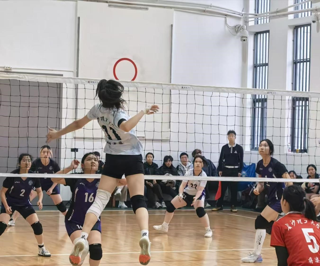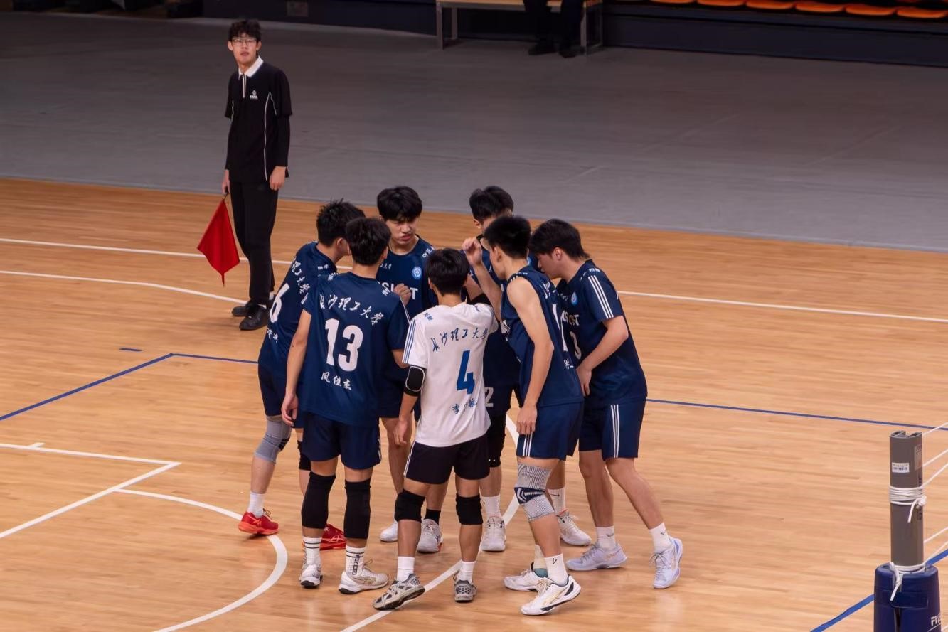 赛场之外,由我校师生组成的助威团成为比赛中一道温暖而有力的风景线。自小组赛至决赛,看台上始终飘扬着“长理加油”的呐喊,每一次得分都伴随着雷鸣般的掌声,每一次胶着时刻都有挥舞的加油棒为队员注入信心。这股来自观众席的澎湃力量,与场上队员的奋勇拼搏形成“双向奔赴”,不仅点燃了球员的斗志,也凝聚起长理人团结一心、昂扬向上的精神风貌。 4