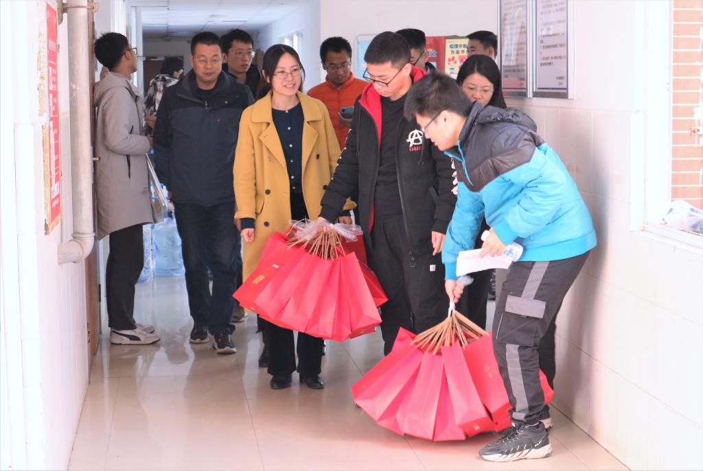 12月21日中午,冬至当天,为舒缓考研同学压力,给考研同学加油,物电学院组织了“考研送温暖”活动。院党委副书记宋国宁、2018级各班班主任、学工办全体老师来到学生宿舍,向考研学子送上“金榜题名”大礼包。