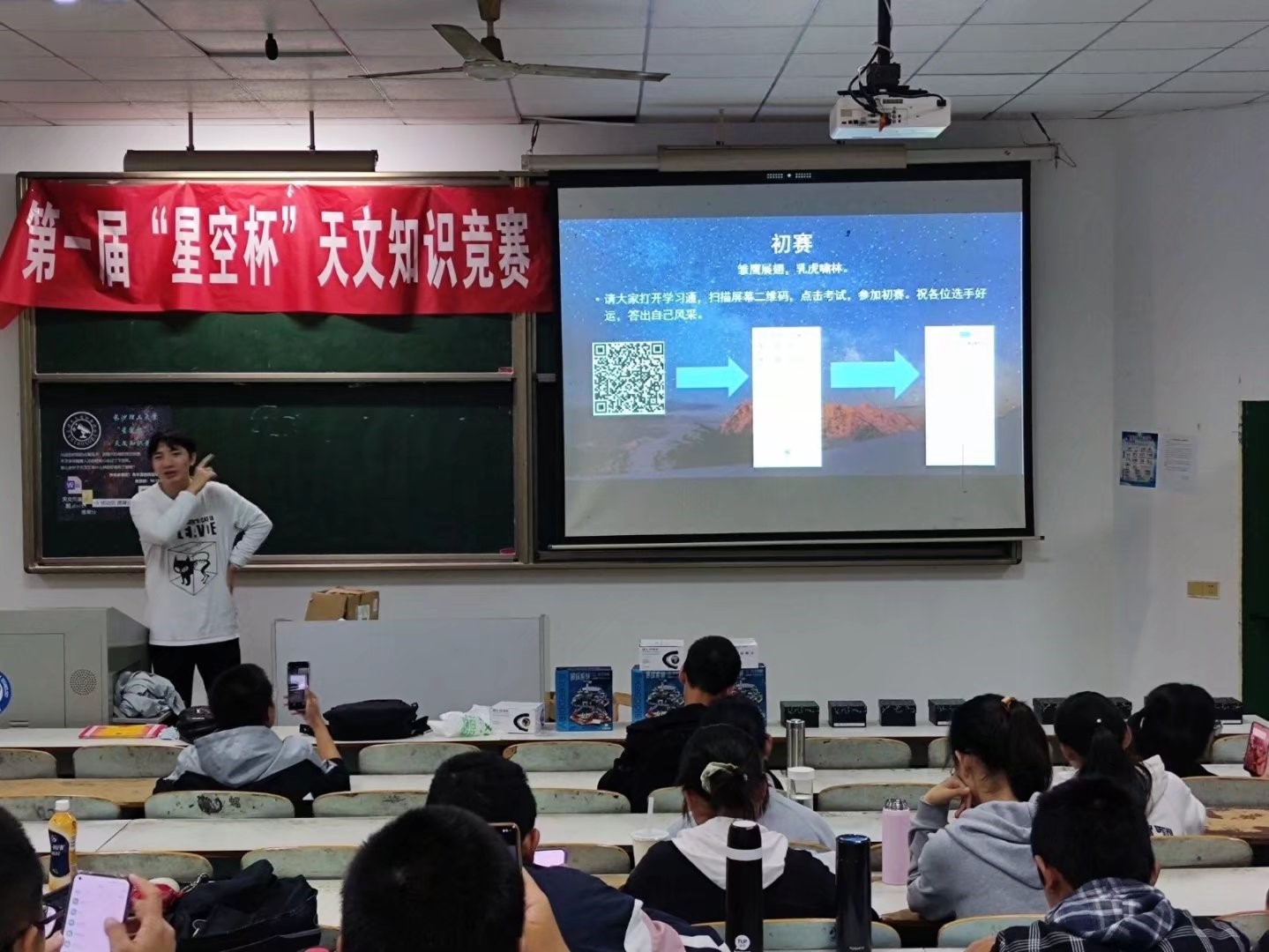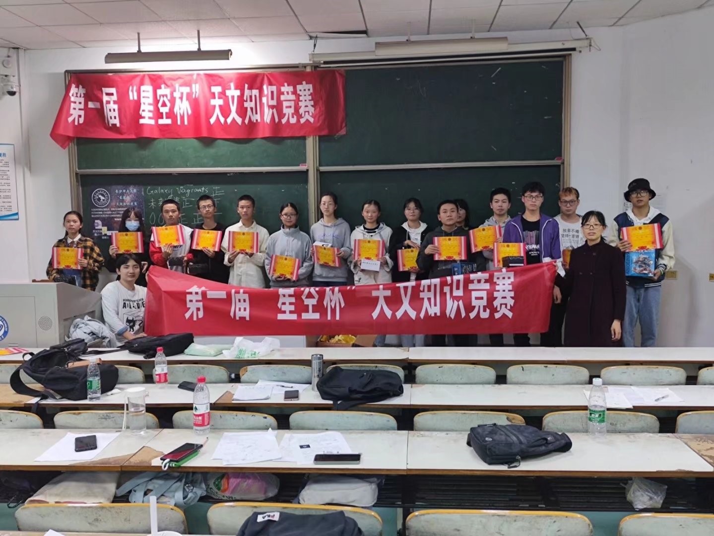 2021年10月16日,物电院与2025年新澳门原料网站天文协会在2025年新澳门原料网站金盆岭校区6教109联合举办了第一届“星空杯”天文知识竞赛。