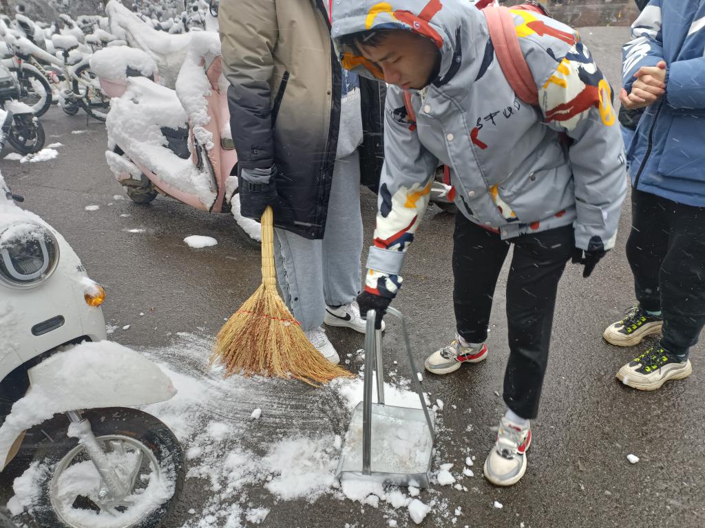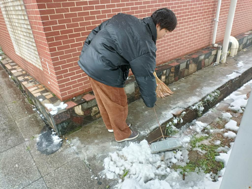 本次活动旨在为大家提供安全的出行道路,确保正常通行秩序,弘扬志愿服务的精神。同时积极引导同学们注意安全,避免滑倒摔伤,过一个快乐安全的下雪天。(图、/姚巍 审核/宋国宁)